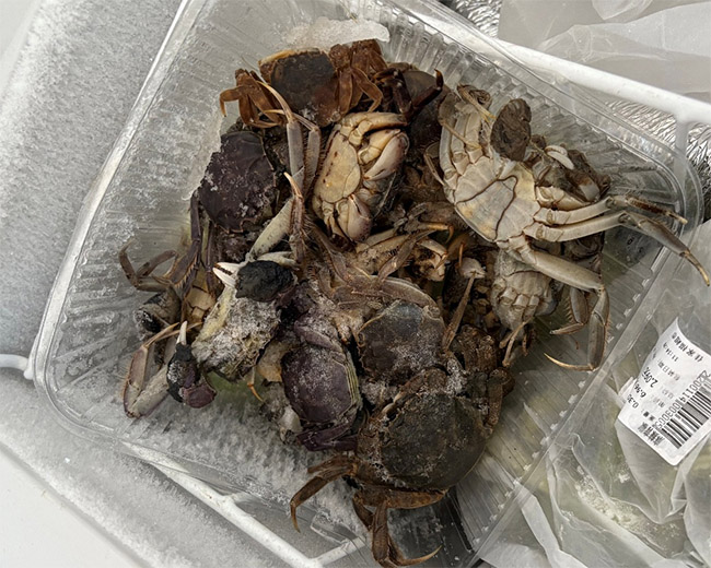图为团队入户走访时观察到存放超过6个月的螃蟹。胡芳铭 供图