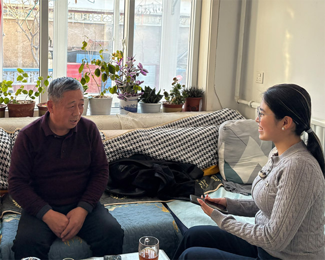 图为团队成员与村民进行访谈的情景。赵一琳 供图