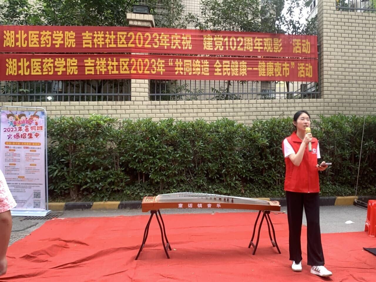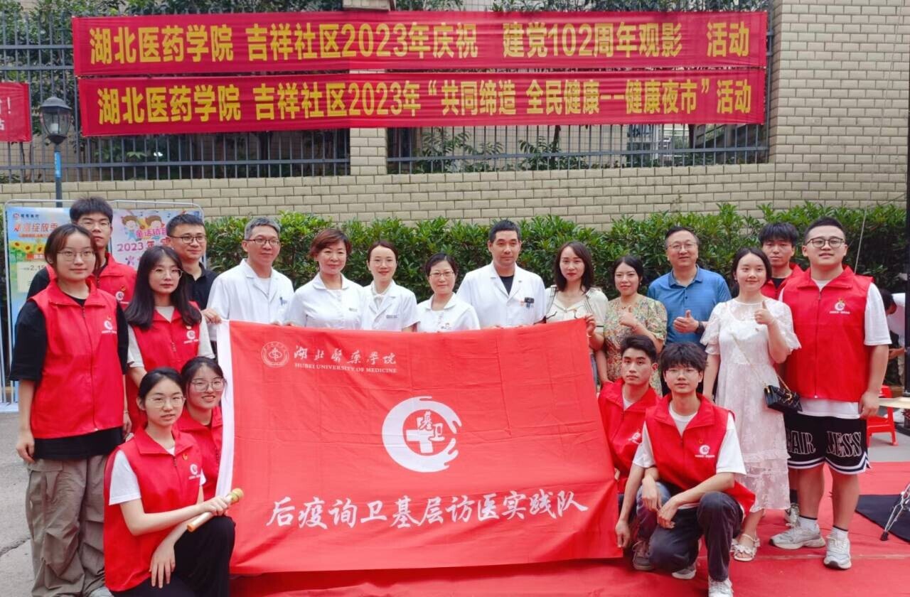 在7月1日建党节之际,湖北医药学院“后疫询卫,基层访医”实践队秉承永远跟党走的信念,立足于“健康中国”发展战略,积极承办“健康夜市”活动,深入吉祥社区爱丽舍小区进行开展,为社区居民进行义诊等活动。