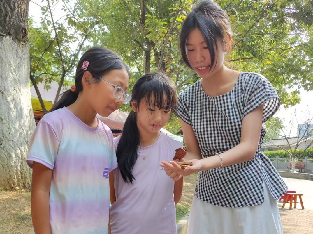 (图为成员黄欣携带中药材向孩子们展示 通讯员林子涵摄)