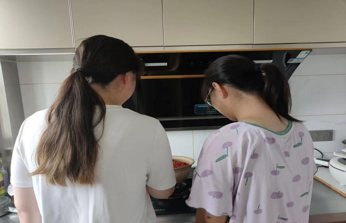 活动中,实践队组织了“健康生活工作坊”,邀请居民亲手制作药膳和健康小食。队员朱余琦携带图文手册及山药、莲子、百合等实物样品入户讲解,结合居民日常厨房场景,现场演示食材的药用价值和简易药膳制作方法。例如,在熬制银耳莲子羹时强调“慢火出胶”的关键技巧,在制作陈皮红豆沙时阐释陈皮的理气功效。