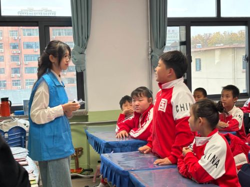 为积极响应国家关于弘扬“两弹一星”精神的号召,聊城大学数学科学学院依托专业特色与学生志愿力量,组建了“数绘星河,弹魂永续”志愿宣讲团,致力于面向全社会开展“两弹一星”精神宣讲。11月6日,宣讲团成员走进聊城大学附属小学,面向五年级全体学生开展了“传承科学家精神,砥砺报国之志”主题宣讲活动。活动通过系统梳理中国核工业发展脉络、深情讲述科学家奉献故事、深度解读时代精神价值,并辅以珍贵历史影像与生动讲解,将宏大的爱国主义教育转化为青少年可感知、易理解、能共鸣的生动课堂,旨在引导学生树立科技报国志向,深化家国情怀认同。