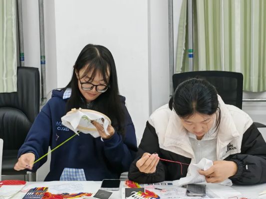 活动尾声,同学们纷纷展示自己的作品,互相交流创作心得,现场氛围热烈融洽。参与同学表示:“原来刺绣和做发圈这么有趣,亲手完成的作品特别有成就感,还学会了实用的手工技能!”