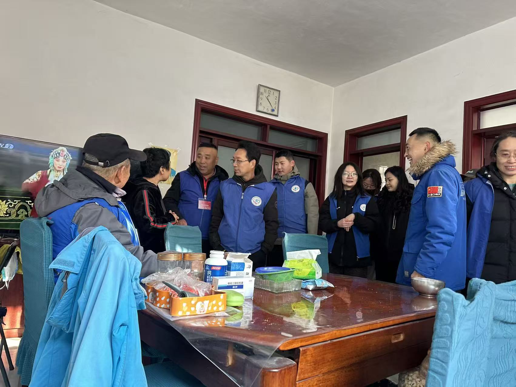 无需家属过多招呼,志愿者们便主动投入到帮扶工作中:有的细心整理沙发上散落的物品,将衣物折叠整齐;有的拿起抹布,仔细擦拭茶几、窗台的浮尘,用双手为老人营造整洁舒适的居住环境;还有的志愿者围坐在老人身边,耐心倾听老人讲述生活点滴与过往经历——从针漳村的田间往事到小区里的邻里日常,即便交流节奏稍缓,志愿者们也始终保持专注与热忱,偶尔轻声回应、适时附和,让两地的房间内都回荡着温馨的交谈声。一旁的家属看着志愿者们忙碌又真诚的身影,舒展了眉头,不时与志愿者交流老人的生活习惯与饮食禁忌,言语间满是对志愿者们的认可与感激之情。