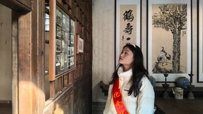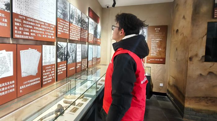 团队成员在故居的室内影像展区驻足凝视,透过墙上的老照片与历史资料,沉浸式回溯烈士的生活与革命场景,在静谧的展陈空间中,与先辈的精神进行跨越时空的对话。