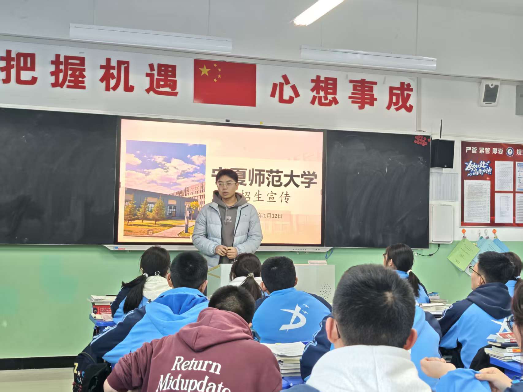 为搭建高校与中学的有效沟通桥梁,充分发挥朋辈传递作用,帮助高中学子精准了解高校信息、合理规划升学方向,2026年1月8日至15日,宁夏师范大学资源环境与生命科学学院“梦圆大学·相约宁师”招生宣传实践队走进宁夏中卫市海原县第一中学,开展招生宣传社会实践活动。