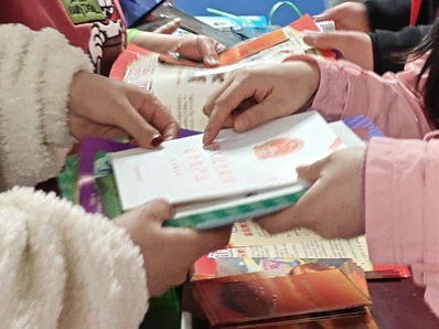 图:团队向社区人员赠送科普手册