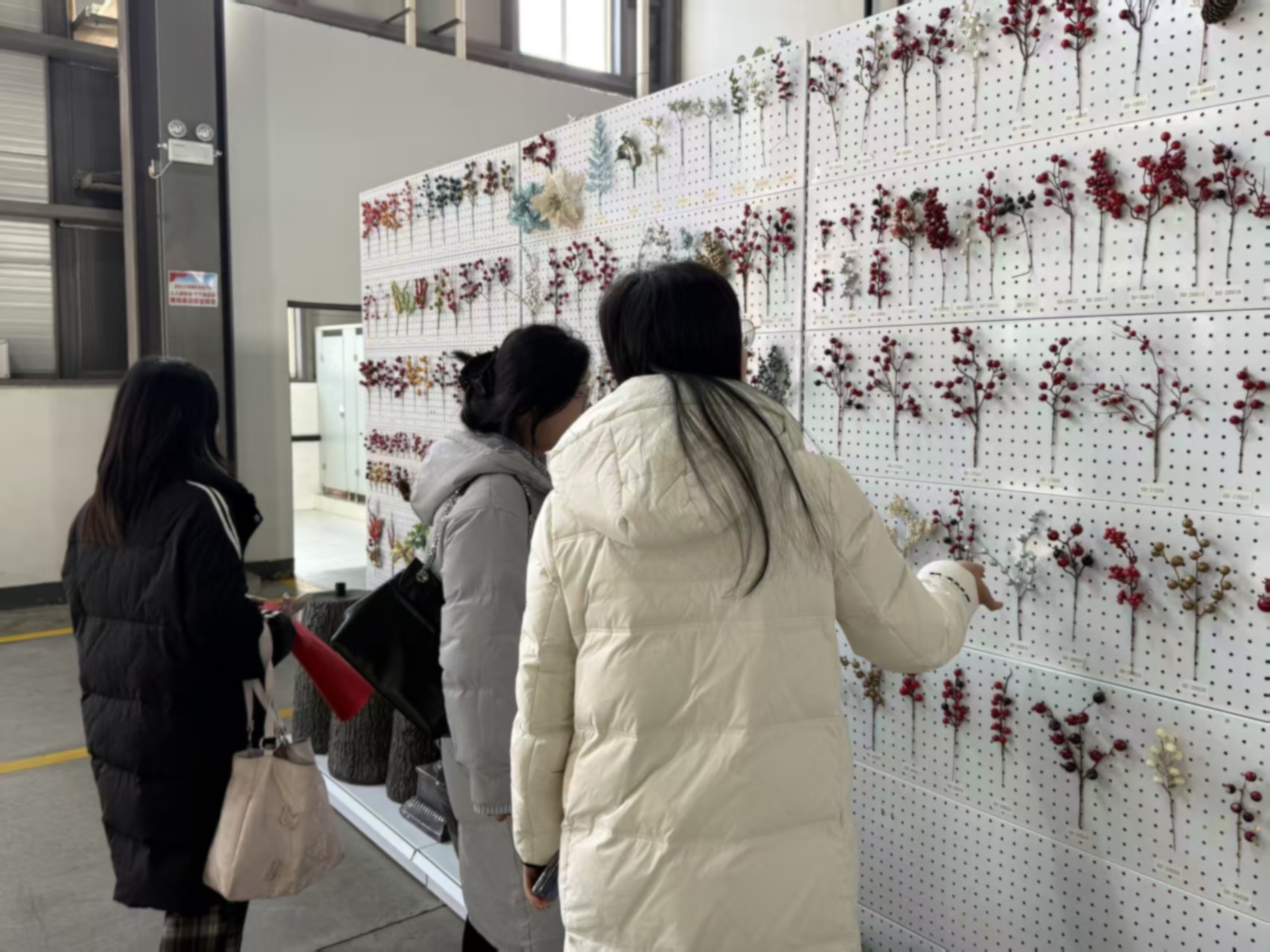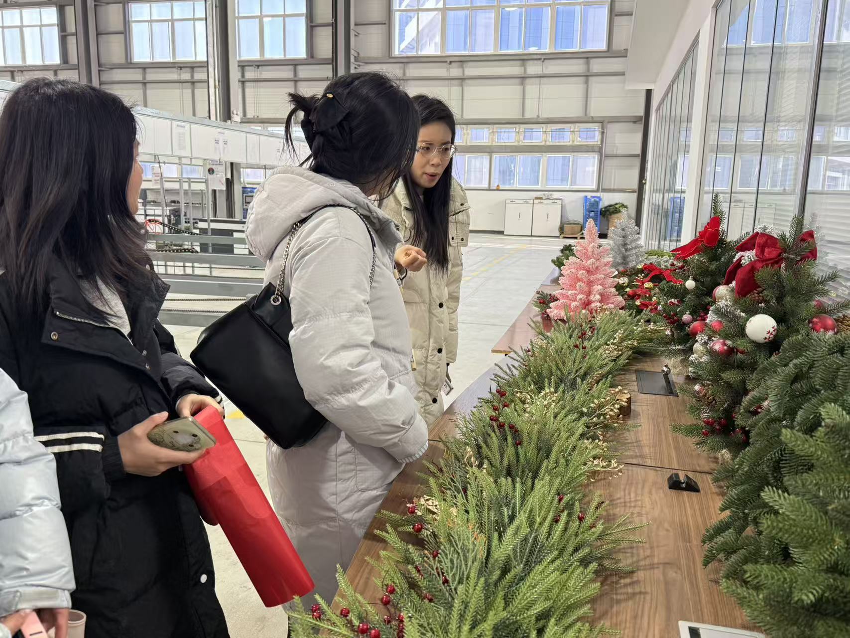 1月11日,实践团首站参观陕西咸阳汉元新材料科技有限公司。作为聚焦节日装饰全产业链的外向型企业,该公司主营的仿真圣诞树、人造植物等产品,正通过跨境电商平台走向“一带一路”沿线国家。