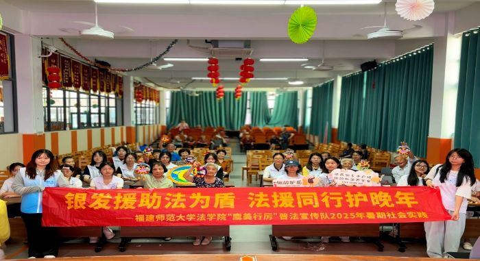 七月酷暑中,福建师范大学法学院“廌美行厉”实践队秉持热忱,紧扣“法护银龄,四季安澜”主题,开展暑期“三下乡”社会实践活动,以专业学识与青春担当,为老年人送去法治关怀与温暖。
