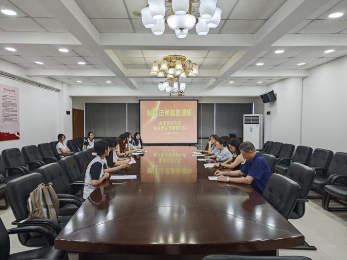 7月2日下午3时,福建师范大学法学院“廌美行厉”实践队12名成员走进福州市法律援助中心,围绕“人口老龄化背景下老年人权益保护”主题,邀请该中心陈闽霞主任及林婷、姚海玉律师,福建先问律师事务所黄熹律师开展专题调研,旨在借鉴先进经验,为“银发援助”志愿服务积累经验。