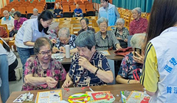 在“一对一手工挂件制作”环节,队员们与老人分组协作,穿珠引线间闲话家常。“奶奶,您平时会用智能手机吗?”“爷爷,家里遇到法律问题会找谁帮忙?”在轻松交流中,队员们细致记录老人的法律需求与生活困惑。手工桌上,各种写着“中国梦”“祖国万岁”红绳挂件逐渐成型,也串联起两代人之间的温情对话。