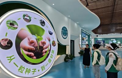 “这些蔬菜长在管道里,不用土壤也能活?”在无土栽培展厅,实践团成员被螺旋管道式栽培、气雾栽培等技术吸引。负责人介绍,园区的无土栽培包括水培、基质栽培等多种方式,其中鱼菜共生系统堪称“生态奇迹”——鱼池废水经处理后成为蔬菜的营养液,蔬菜净化后的水再回流养鱼,形成“养鱼不换水、种菜不施肥”的闭环。 在荷兰桶栽培区,椰糠基质引起成员们的兴趣。“这是椰子外壳打碎制成的,成本低、可重复使用,特别适合家庭种植。”负责人说,通过立体栽培、廊架式种植等模式,园区11.7万平方米温室实现“四季常青”,土地利用率提升30%以上。而种子墙上,170多种包衣种子更是彰显“中国菜芯寿光制造”的实力——这些自主研发的品种,既抗病虫害又能提升产量,成为产业竞争力的核心。