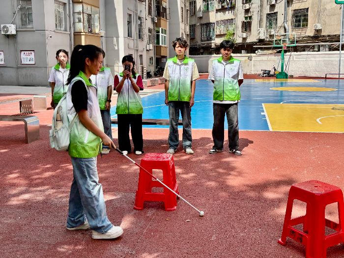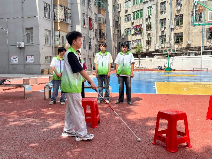 随后,队员们亲身体验残障生活,手动轮椅爬坡需持续发力且方向难控,蒙眼拄盲杖前行时,黑暗与未知引发本能恐慌。沉浸式体验让队员真切感知到日常出行对残障人士的严峻挑战,深刻领悟同理心关怀的重要性。