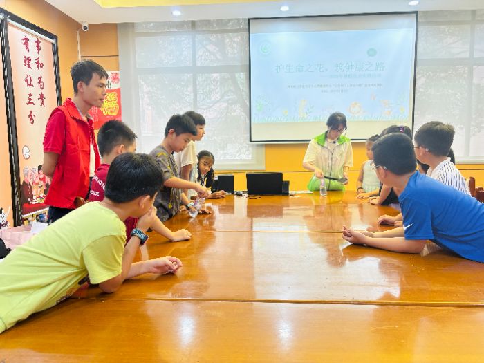7月8日下午,实践团兵分两路,走进湖滨街道与莲坂村的暑托班,为职工子女打造了一场集知识与欢乐于一体的成长课堂。