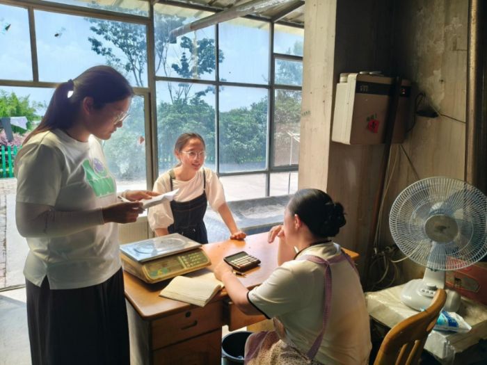 图为社会实践队成员采访春萍茶业负责人。袁成鑫 供图