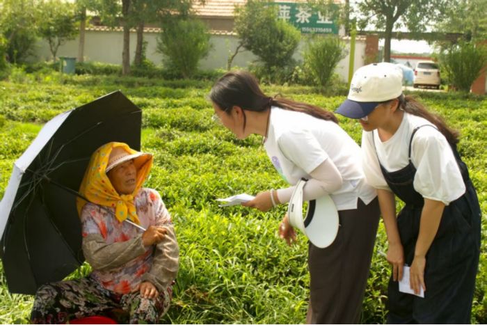图为实践队员与村庄内茶农进行交谈。袁成鑫 供图