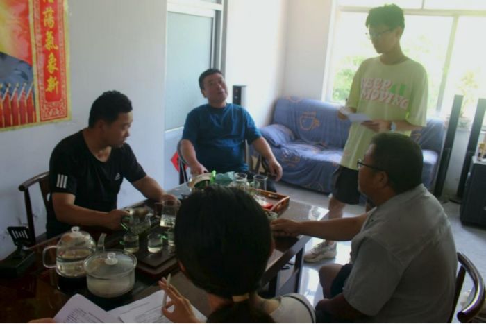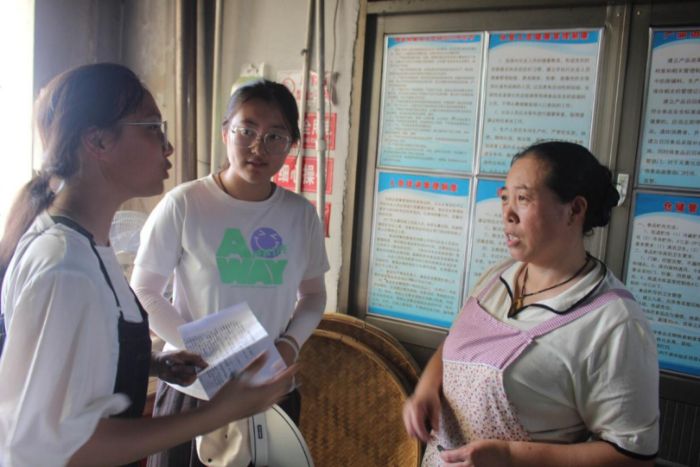 图为实践队员对茶厂员工进行问卷调查。王晶 供图