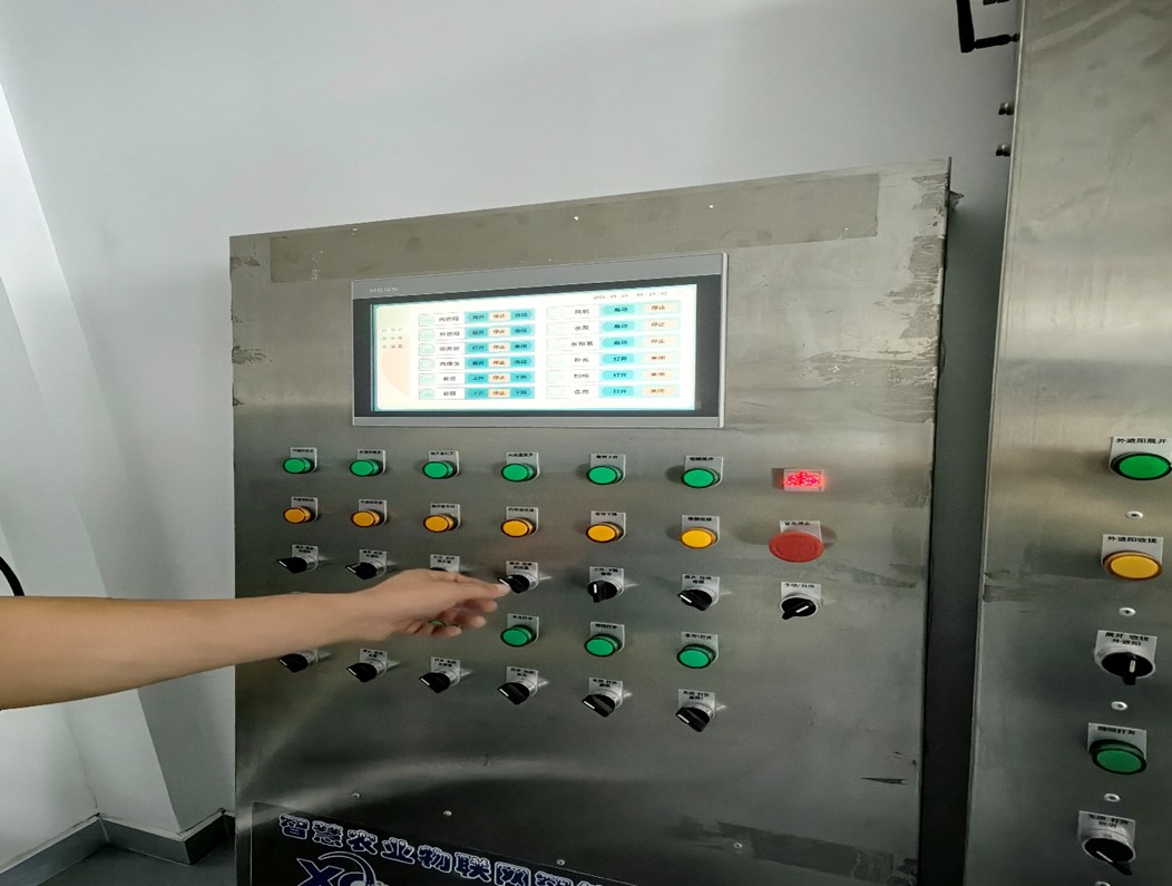 随后,实践团走进控制系统组装车间,现场观摩了设备核心部件的组装过程。负责人介绍,车间不仅负责硬件组装,还专注于软件系统的开发,如电子围栏功能 —— 当设备超出预设范围,会通过小程序实时报警,既防盗又能追踪轨迹,显示屏还可对操作员进行实时抓拍,保障设备规范使用。在物联网平台展示区,一块可视化大屏吸引了众人目光。屏幕上实时显示当地气象数据(风速、风向、太阳能等)、大棚环境参数(温湿度、光照)、水肥机运行状态及种植信息,甚至包含蔬菜价格和预警提示。“平时可用手机小程序操作单园区设备,若管理多个园区,大屏监控更高效。”负责人吴总表示,平台支持定制化配置,能根据不同园区需求调整显示模块。实践团还了解到,温室控制柜也是公司的重点产品,可远程或手动控制遮阳、补光灯、卷帘等设备,与水肥系统形成联动,构建起“感知-决策-执行”的智能农业闭环。