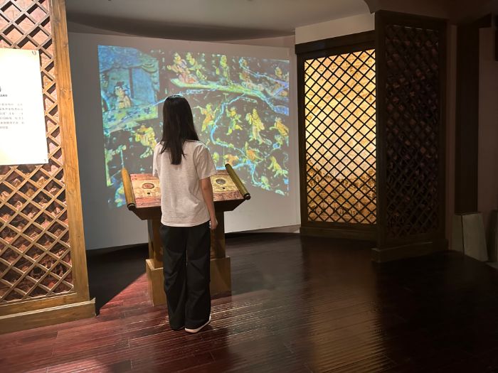 志愿者首先步入博物馆一楼,这里设有“文明曙光”和“泽州万象”两大展区。“文明曙光”展区的展品揭示了早在约30万年前,先民们便在这片横跨长江两岸、平原与丘陵交错的土地上繁衍生息。丰富的自然资源与适宜的气候孕育了早期的人类文化。紧邻的“泽州万象”展区则呈现了山西晋城借展的古代彩塑与壁画艺术。彩塑精巧细腻,壁画生动鲜活,描绘了古代生活的多彩画卷。