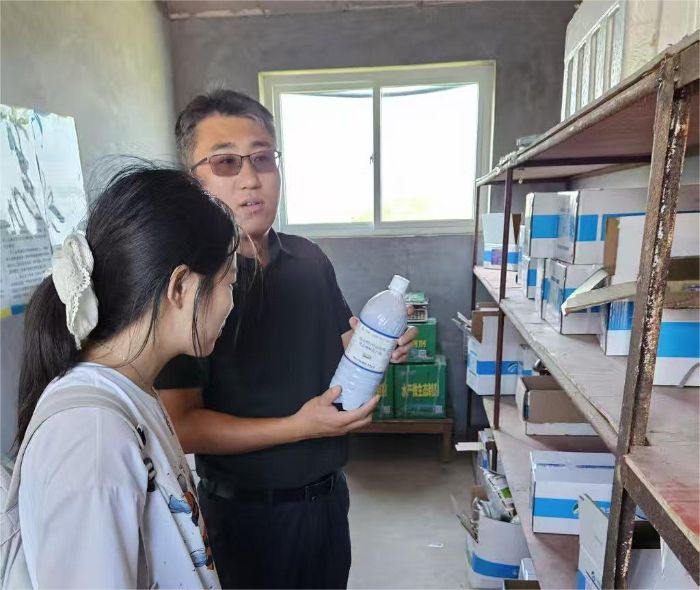 接着,技术人员带领团队进入到海参食品与药品的制作车间。映入眼帘的是三个正在不停运作、搅拌的生产罐与一排排放满各种瓶瓶罐罐的货架。队员凑近生产罐进行观察,技术人员在一旁讲解到其中添加了酵母菌与多种药物,因此闻起来会有一股山楂味与鱼腥味。顺着走道,技术人员将团队成员带领至存放药品的货架前,为队员们展开介绍。专员坦言,海参的健康生长与食品安全一直是养殖过程中他们最关心的过程。