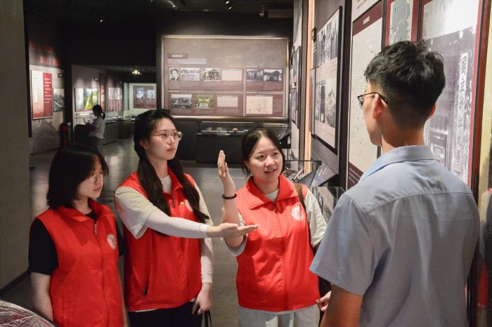 图为筑梦团成员向讲解员提问。蒋祺 摄