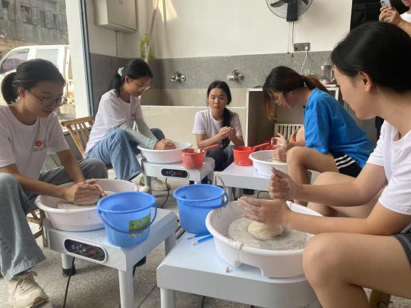 随后,成员们来到了“刘英令江西省美术大师工作室”亲身体验了拉坯工艺——看似简单的动作却需要精准的力道与角度,在工作人员的耐心指导下,才勉强完成了一个歪歪扭扭的坯体,深刻体会到陶瓷制作的难度与匠人的不易。这些老厂区不仅是景德镇近代陶瓷工业发展的见证,更让成员们感受到了传统工艺在时代变迁中的坚守与新生。