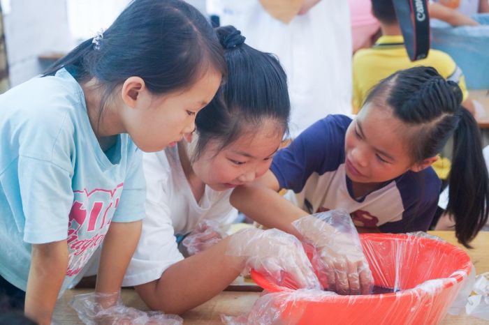 图为学生们讨论扎染方法。“籽籽同行”突击队 摄
