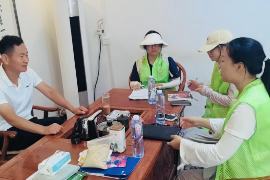 (图为队员们正在采访润泽牧业总经理。郑子涵 供图)