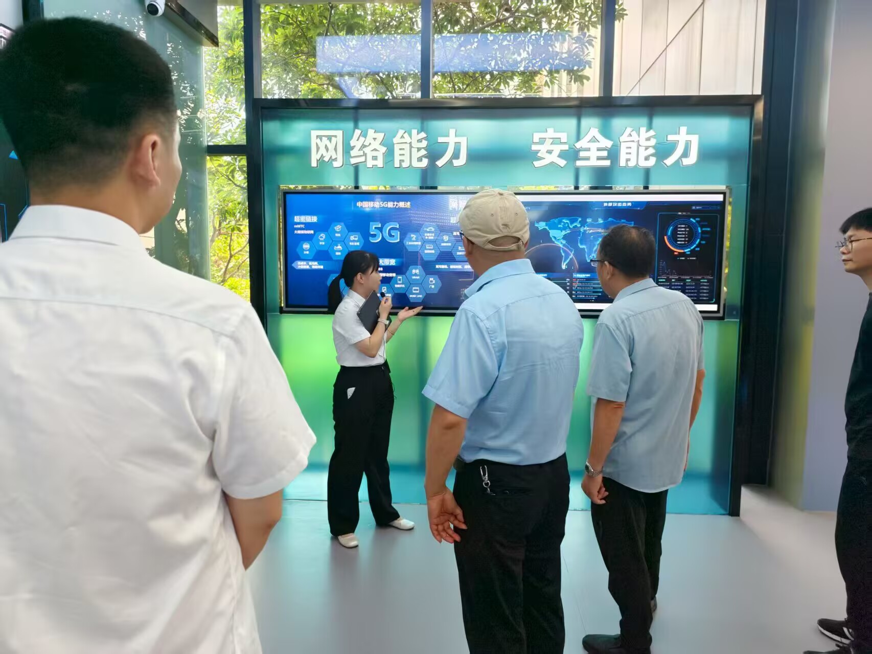2025年7月28日,在中国移动池州分公司工作人员的热情陪同下,孙院长与钱叶旺教授亲临现场指导,和实践团成员一同开启了这场5G技术探索之旅。活动伊始,负责人向孙院长、钱教授、陈老师和成员们介绍了此体验馆,让他们对此有了初步的认识。随后巨大的展示屏幕上,5G技术在各个领域的应用成果不断滚动播放,从远程医疗的高效救治,到智能工厂的精密生产,再到智慧城市的有序运行,5G正以前所未有的速度改变着人们的生活和工作方式。