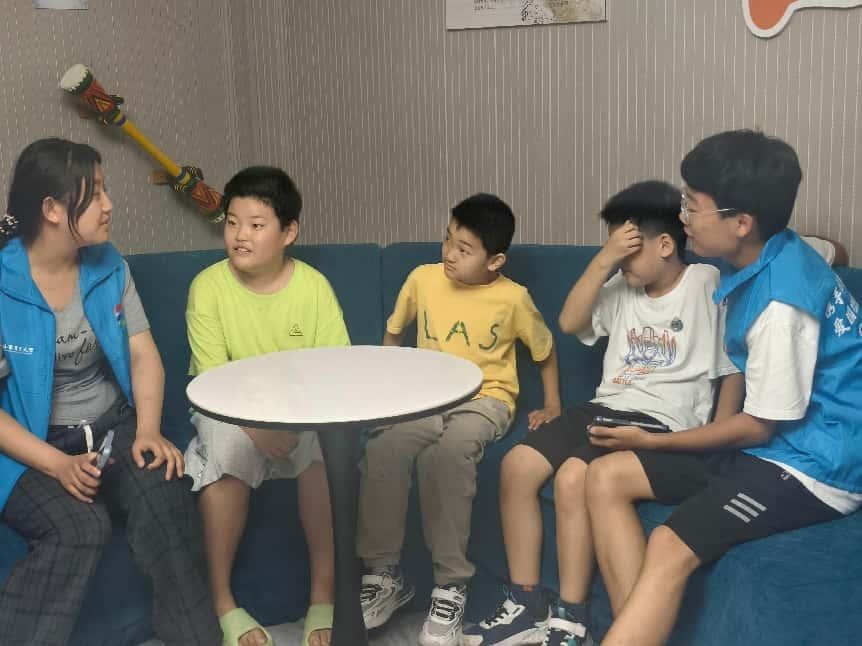 图 4 团队成员一对一为孩子解疑答惑。于佳媚 供图