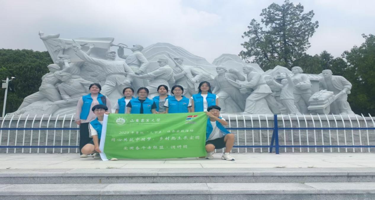 爱国主义教育是青年成长的必修课,也是乡村文化振兴的重要底色。为推动爱国主义教育在乡村落地生根,7月8日至10日,山东农业大学“爱国奋斗者联盟”实践团队一行9人,奔赴泰安多地开展“三下乡”社会实践。团队以红色文化为纽带,串联烈士陵园瞻仰、红色展厅参观、非遗直播、政企校研讨、青少年调研及分层教学等环节,旨在以沉浸式、互动性实践,深化青少年对爱国主义的认知,激活乡村红色文化资源价值,助力青少年成长与乡村文化传承双向赋能。