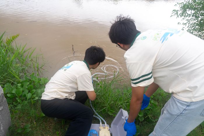 图为实践队进行水质取样(通讯员 陈乐乐 摄)