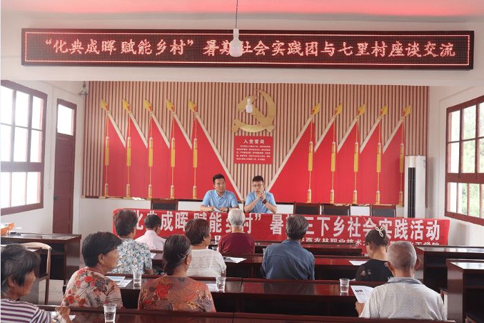 赴南郑传承弘扬“国家非遗+川陕革命”精神文化,助力乡村振兴7月21-24日,陕西农林职业技术大学药物与化工学院“化典成晖 赋能乡村”暑期社会实践团一行9人赴汉中市南郑区黄官镇、濂水镇开展暑期三下乡社会实践活动,实践团通过实地调研、重点走访、参观研学等追寻“国家非遗+川陕革命”精神文化,依托团队优势开展政策宣讲、居民健康知识科普,走访农户32家,收集问卷调查60份,健康科普覆盖100余人次,为七里村的发展注入青春活力,以实际行动助力乡村振兴。