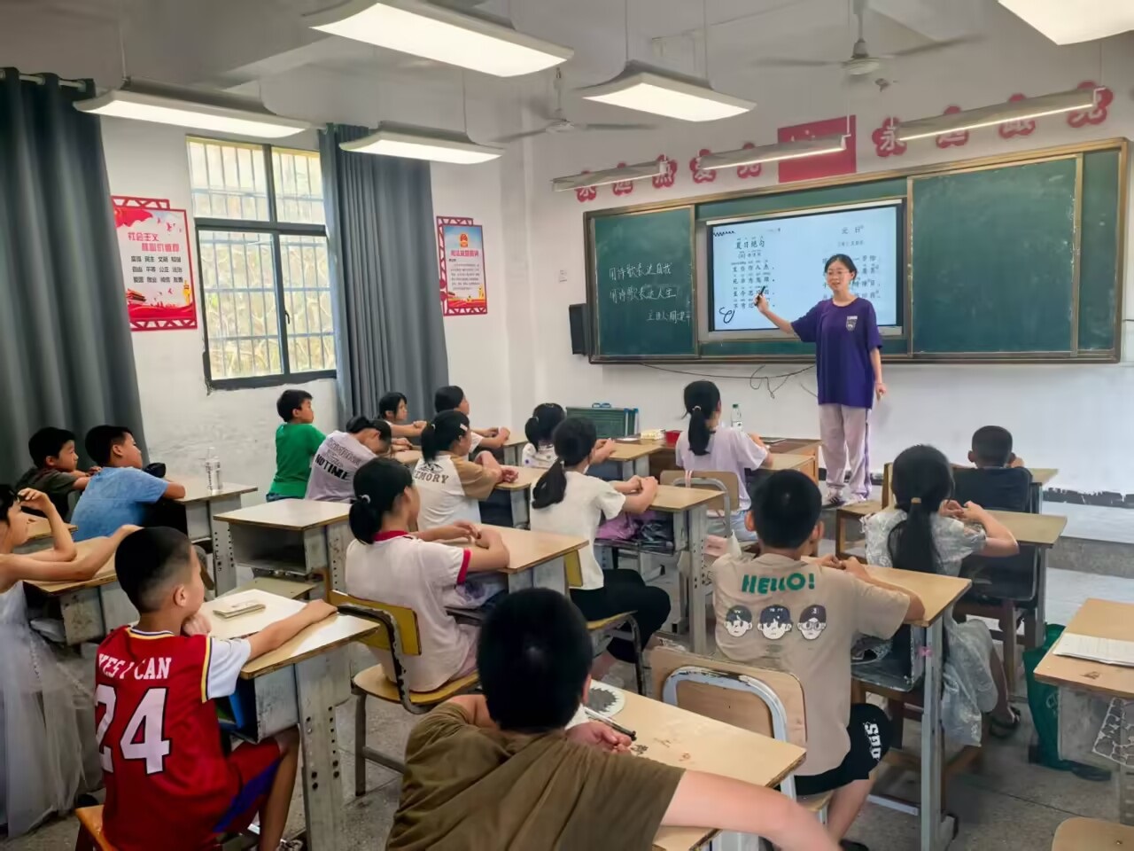 语言是沟通的桥梁,更是凝聚民族情感的纽带。7月9日,江苏第二师范学院七色花支教团于江西于都罗坳镇杨梅小学开展的暑期夏令营中,“推广普通话”活动始终以“筑牢中华民族共同体意识”为核心,让国家通用语言文字的魅力在红色土地上生根发芽。