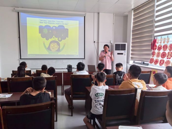 图为英语老师讲解英语绘本,勾艺佳供图