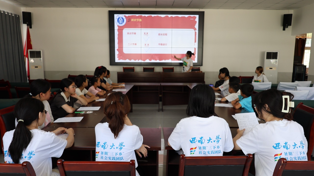 为弘扬中华美育精神,坚定文化自信,小分队成员结合自身专业优势,在石泉村党群服务中心活动室为当地儿童开展了一堂别出心裁的乡村美育课。