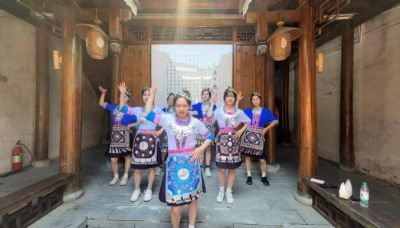 “幸福的侗家哎,多嘎多耶情豪放……”团队成员伴着《侗歌声声唱给党》的旋律起舞,衣衫飘动间,银饰发出清脆的声响,与歌声一同在峒乡的空中回荡。成员们运用现代拍摄手法,镜头追随着流动的靛蓝色,将侗装与古老建筑、传统手艺、青春身影、传承使命,都定格在同一方画面中。此外,他们还身着侗装拍摄了诸多相关视频,计划通过新媒体平台,让侗族文化焕发新的活力。