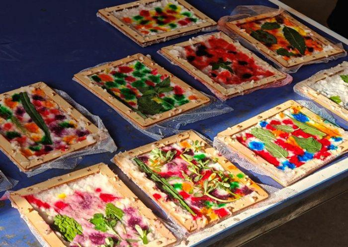 教室瞬间变成创意工坊。孩子们用提前收集的雏菊、银杏叶等装饰纸面,有的还尝试用食用色素调出"晚霞红""湖水蓝"。支教团特别强调"取之有度"的理念,引导孩子们用落叶替代鲜花,注意生态保护。当老师展示出第一件成品,教室里顿时响起此起彼伏的惊叹声。孩子们睁大眼睛,看着五彩的花草在纸浆的覆盖下渐渐呈现出朦胧的美感,宛如被时光封存的琥珀。