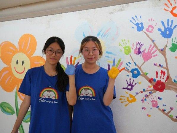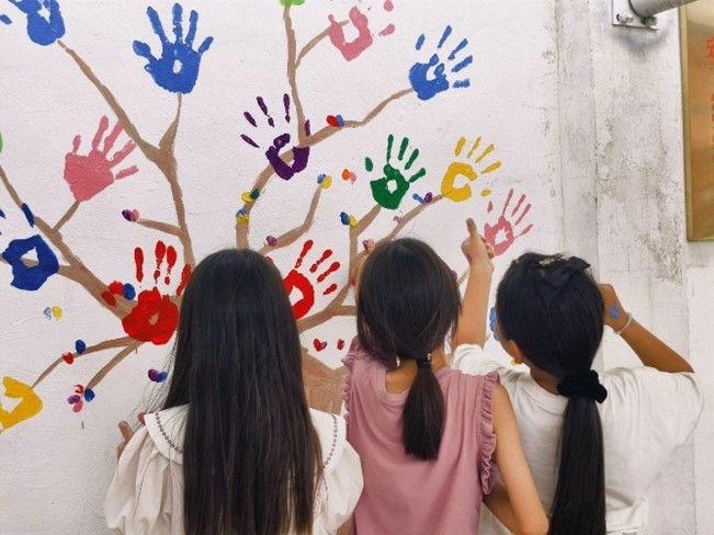 在魏庄小学的"五彩手印树"墙绘前,支教团成员应都语菲正在做一件特别的事:她为每个参与创作的孩子测量手印的尺寸。"这是看得见的成长刻度。"