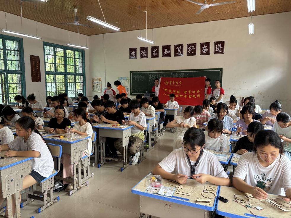 孩子们在团队成员悉心指导下,小心翼翼地组装着作品各个部件,每一个动作都充满专注和期待。近来,吉首大学通信与电子工程学院立足社会需求,学院组织专业师生团队,深入偏远山区中小学,通过趣味编程、机器人搭建、智能小车竞赛等形式多样活动,着力提升当地青少年的AI素养和创新实践能力,持续开展科普下乡活动,着力提升湘西青少年AI素养,培养科技创新后备力量。