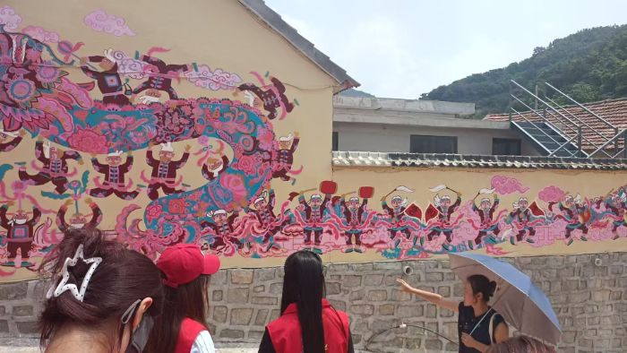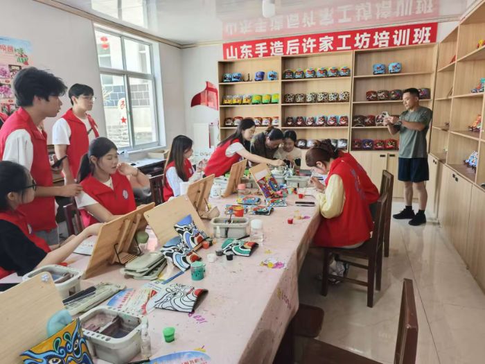 村庄开发“古瓦彩绘”等非遗文创产品,以“十二生肖”“胶东民俗”为主题,将红色故事融入手工艺品。