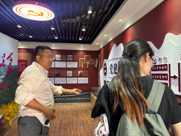 调研团成员与村史馆工作人员进行了专题访谈交流。工作人员向队员们详细介绍了村史馆的建馆理念、展陈思路,以及南泥湾精神在当地代代相传、特别是其艰苦奋斗、尊重自然、建设家园的精神内核如何融入当代乡村发展与生态保护实践的情况。交流中,工作人员结合史料和现实案例,阐述了南泥湾精神中蕴含的因地制宜、自力更生发展生产的思想,对今天推进生态文明建设和乡村绿色振兴的启示意义。这些介绍帮助队员们将历史经验与现实发展需求更好地联系起来。