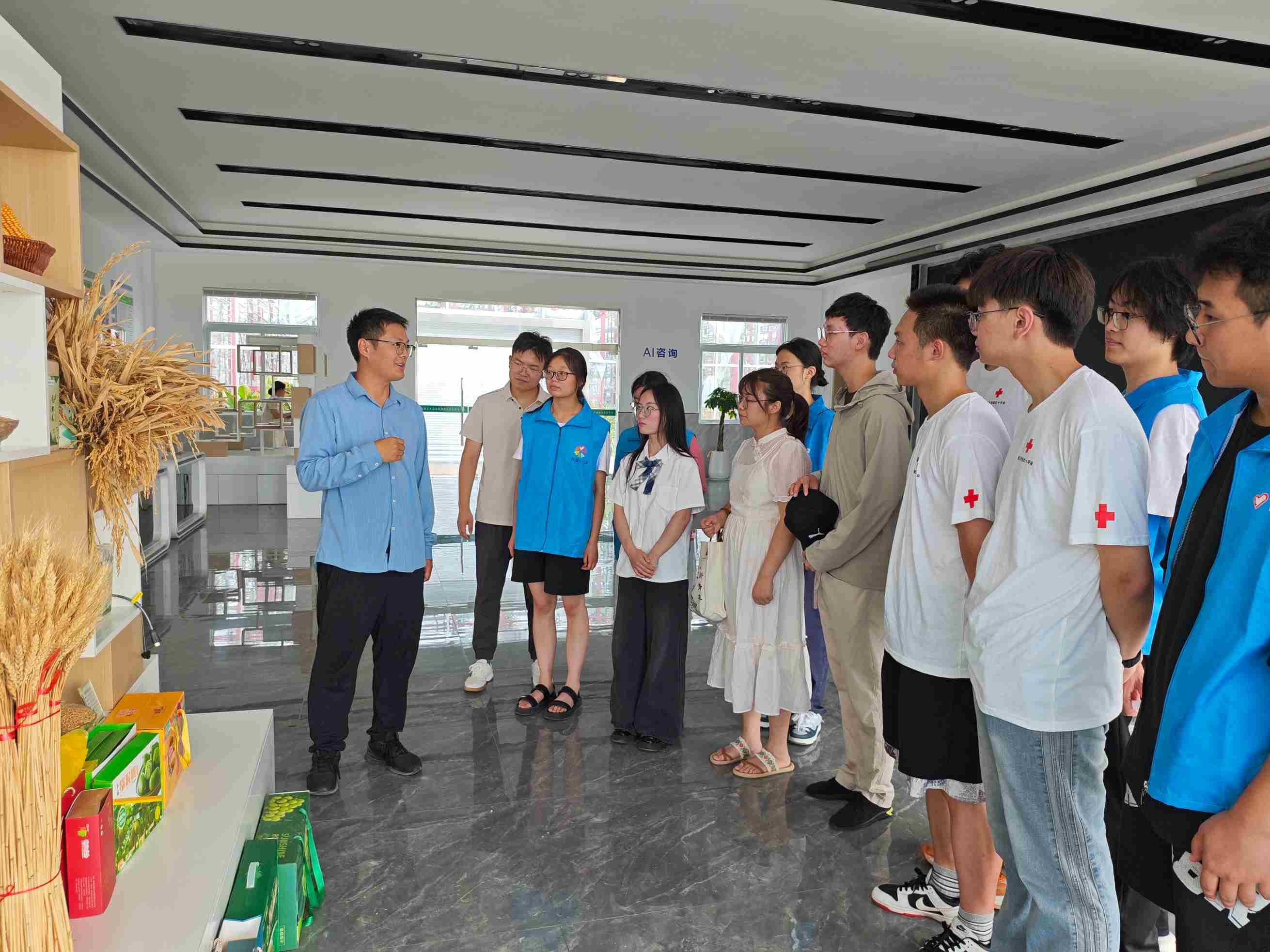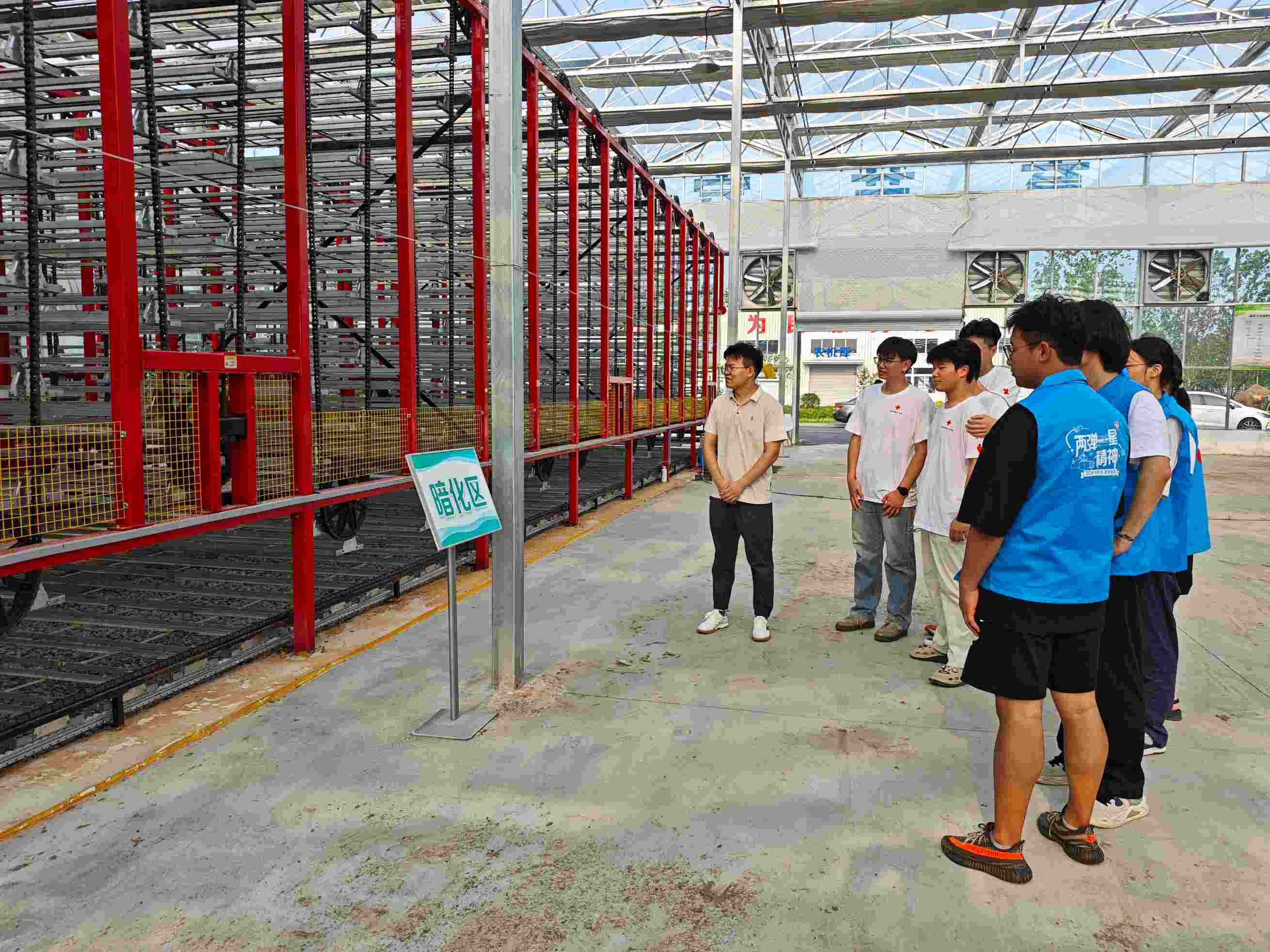 农科共鉴,智创兴农 科技点亮田畴,青志共探农智。宿迁学院机电工程学院志愿者与南京林业大学信息院志愿者共同来到了宿豫区关庙区域性农业综合服务中心参观学习,在讲解员介绍下,成员们观看智能播种机、无人收割机等农机,知晓科技提升农业效率。接着走进党群服务中心,参观科技宣传角展板,了解“智慧农业监测系统”助力乡村发展情况,接触当地特色农产品。成员们领略了当地现代农业及科技赋能农业的新气象。