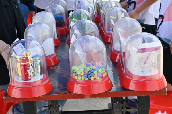 禁毒民警陈列“糖果”、“邮票”等精巧伪装的新型毒品模型,筑牢小朋友们远离毒品的心理防线。