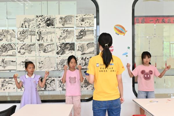 千年文化,浸润童心面对小朋友们“非遗是什么”的好奇询问,实践团成员精心组织了国家非遗科普课程,通过牛郎织女传说、古琴艺术和龙舞表演等生动案例,带领孩子们认识非遗。课堂上,孩子们积极互动、踊跃抢答,在实践团成员寓教于乐的方式中领略非遗的魅力。