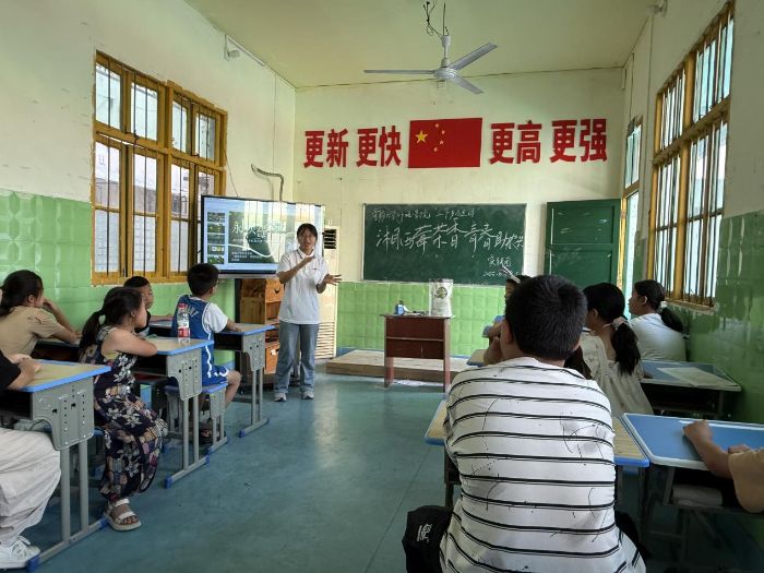 在助力产业发展的同时,实践团在石堤镇开展了以“湘西莓茶香,青春助农兴”为主题的支教活动。团队成员精心设计课程,向孩子们生动展示湘西独特的莓茶文化,让孩子们在互动中了解家乡的莓茶与传统。活动不仅丰富了孩子们的暑期生活,更在他们心中深植了热爱家乡、珍视传统文化的种子,有效促进了文化自信的树立。
