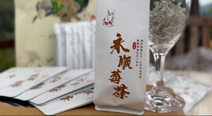 针对品牌与包装短板,实践团充分发挥创意设计能力,精心打造了一系列高品质莓茶包装方案,融合湘西土家族苗族文化元素与现代简约风格,显著提升产品视觉吸引力和品牌价值感。这些设计在当地广受好评,为莓茶注入了独特的文化内涵和记忆点,拓宽了品牌差异化竞争路径。此外,团队还探索莓茶深加工,研发莓茶风味奶茶及健康零食概念方案,助力产业多元化发展,吸引年轻消费群体。