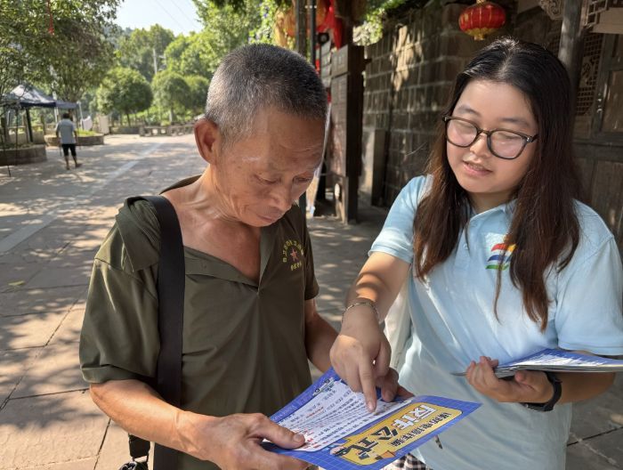 为增强基层群众防诈意识,筑牢全民反诈“防火墙”。2025年7月15日上午,重庆外语外事学院“星火接力·‘潼’心筑梦”实践团深入双江镇街道,开展了一场别开生面的反诈知识宣传活动。通过发放宣传手册、现场讲解典型案例等形式,为辖区居民送上“防骗锦囊”,受到群众广泛好评。