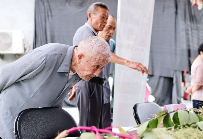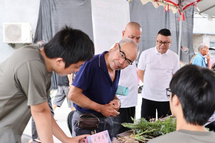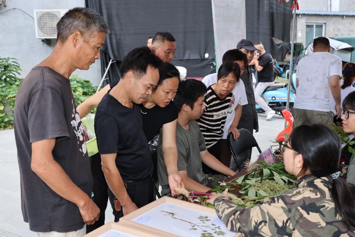 活动当天,尽管烈日高悬,气温居高不下,但西阳村村民们的参与热情丝毫不减。大家纷纷围在药材展示区周围,或认真聆听队员讲解,或拿起药用植物仔细观察,或主动与队员、邻里交流互动。期间,不少村民主动分享起代代相传的民间用药智慧:“萱草根我们这边叫金针根,捣烂外敷可以解毒消肿”,“盐肤木春天的嫩芽能凉拌吃,不仅爽口还能清热”,“山上的芒萁嚼碎了敷在小伤口上,止血效果特别好”……这些源于生活实践的鲜活经验,不仅生动展现了民间医药文化的实用价值,也让科考队队员们收获了书本之外的“知识养分”,真正实现了“队员科普、村民传智”的双向学习、双向赋能。
