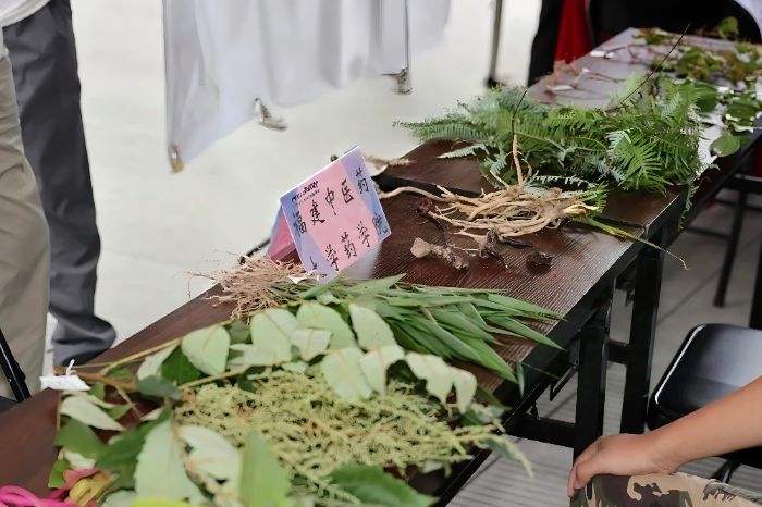 图4紫芝、盐肤木、桑寄生等常见新鲜药用植物逐一被摆放整齐